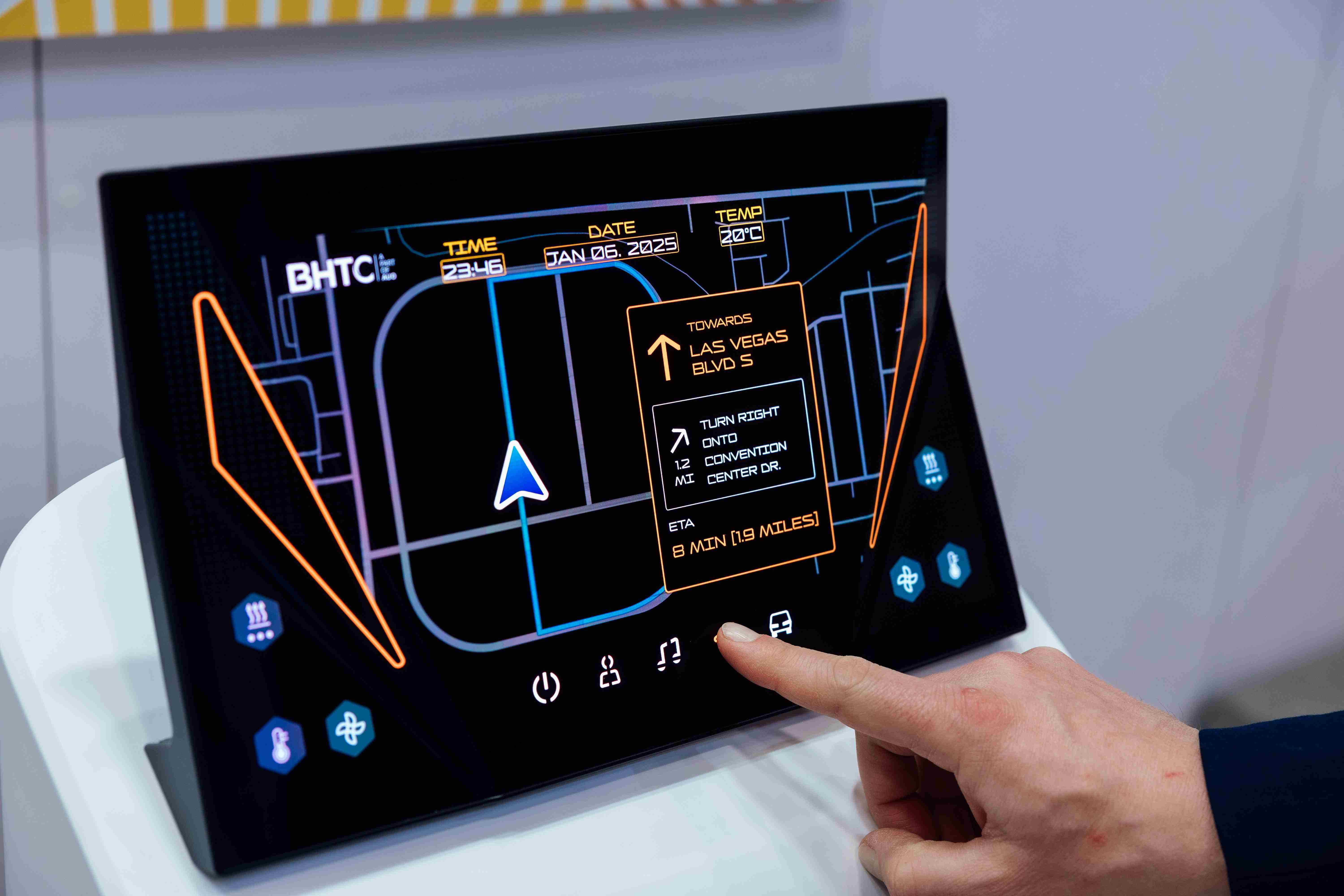 Micro LED可折迭触控显示器(Haptifold Display)结合BHTC多年HMI设计经验,,,,整合中控台和温度控制功能,,,,以优美的曲面和独特的外型助力车内设计美学,,,,在辅以触控回馈下,,,,为驾驶带来更直觉的使用体验。。。。