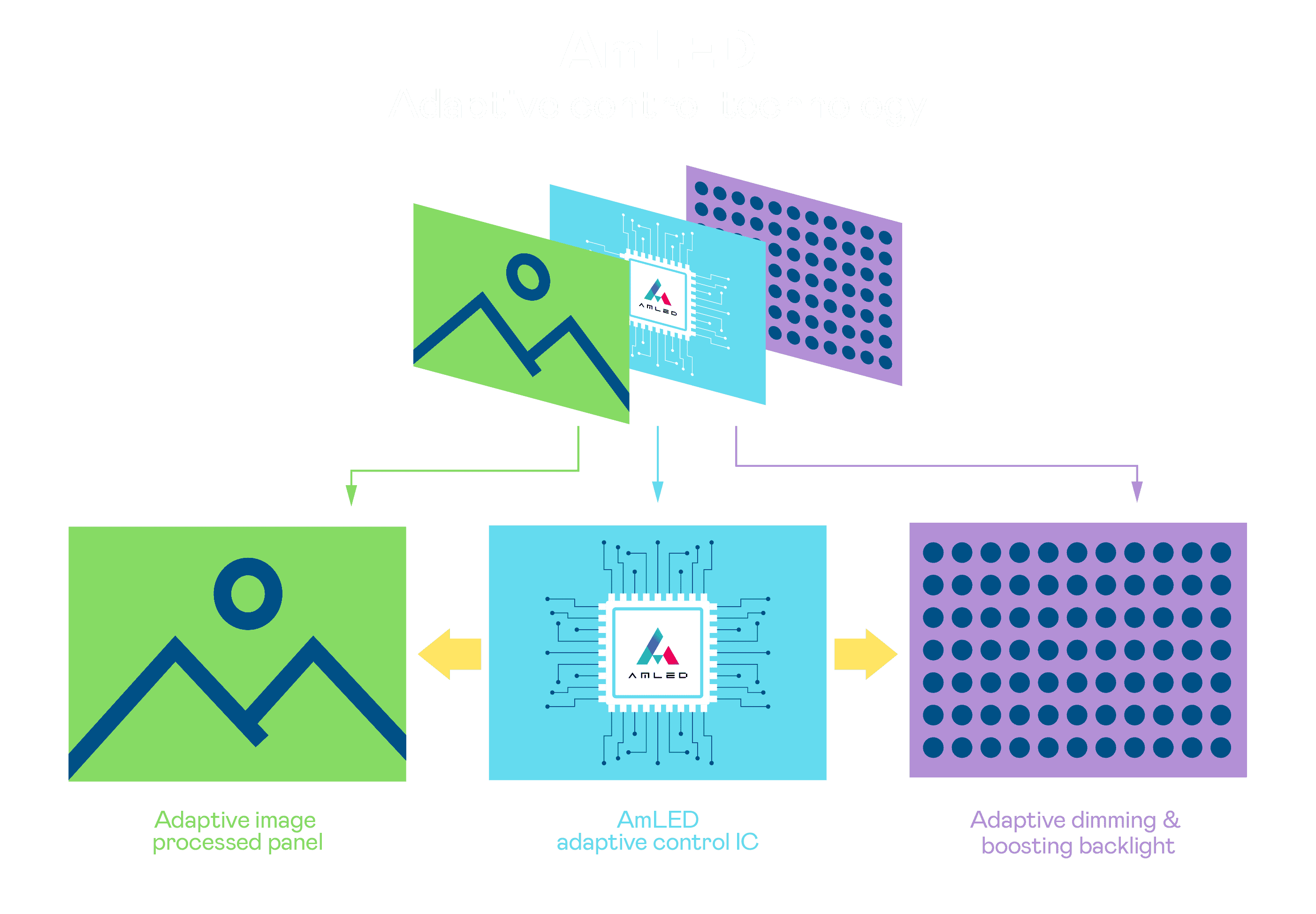AmLED 具备更省电与低蓝光特性。。。。与一般的 LED 背光显示技术相比,,,由于 AmLED 常时处于局部调光状态,,,,其功耗仅有前者的 50% 左右,,,同时 AmLED 还具备低蓝光特性,,,满足长时间使用的护眼需求。。。
